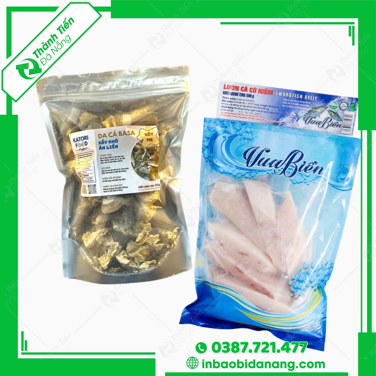 Bạn đang tìm kiếm một công ty in bao bì uy tín tại Đà Nẵng để in ấn bao bì đóng gói cho sản phẩm cá basa? Công ty Thành Tiến Đà Nẵng là đơn vị chuyên sản xuất và in ấn bao bì đóng gói cá basa chất lượng cao với giá thành cạnh tranh. Chúng tôi sở hữu đội ngũ nhân viên dày dặn kinh nghiệm, hệ thống máy móc hiện đại cùng quy trình sản xuất chuyên nghiệp, đảm bảo đáp ứng mọi yêu cầu của khách hàng.