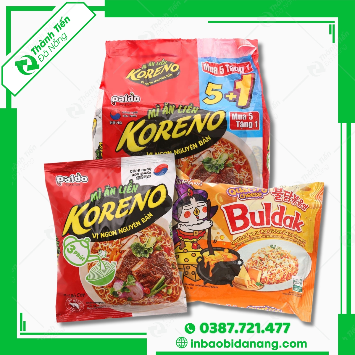 Công ty bao bì Thành Tiến Đà Nẵng luôn đặt khách hàng lên hàng đầu và cam kết cung cấp dịch vụ tận tâm, nhanh chóng và chuyên nghiệp. Đội ngũ nhân viên giàu kinh nghiệm sẽ hỗ trợ bạn trong quá trình thiết kế, sản xuất và giao hàng. Quý khách có nhu cầu về sản xuất và in bao bì mì gói, mì ăn liền, vui lòng liên hệ với chúng tôi ngay thông qua: